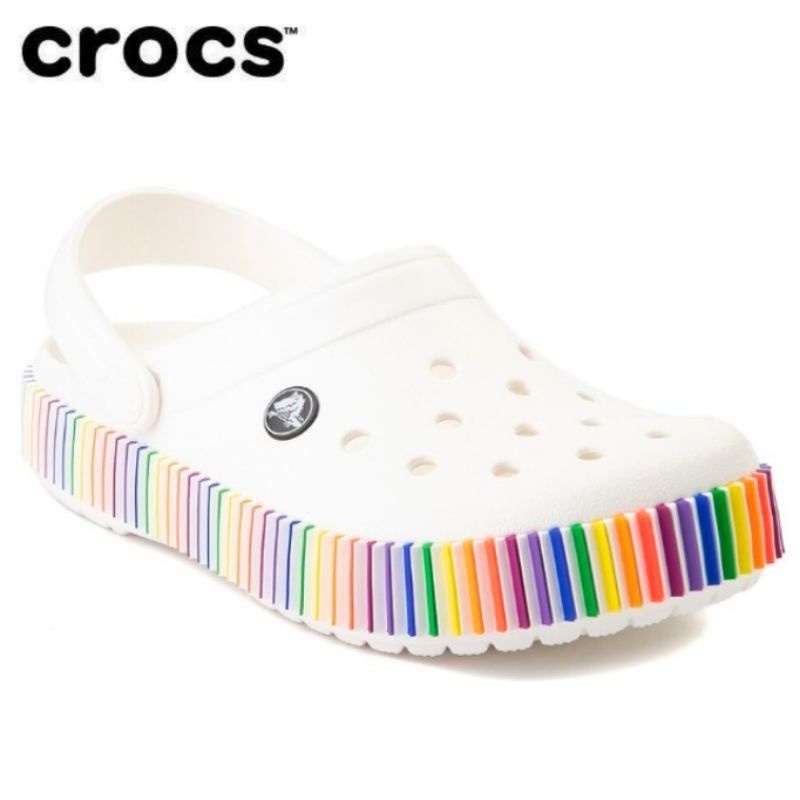 Sandalia Crocs em promoção que você procura. Kids Crocband Color Spectrum Clog Feature. Striped bands appear to be different colors from different angles.
